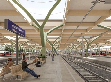 Auf einer neuer Bahnsteigüberdachung am Wiener Westbahnhof entsteht die größte innerstädtische Photovoltaikanlage auf einer Fläche von rund 4 Fußballfeldern (25.000m²).